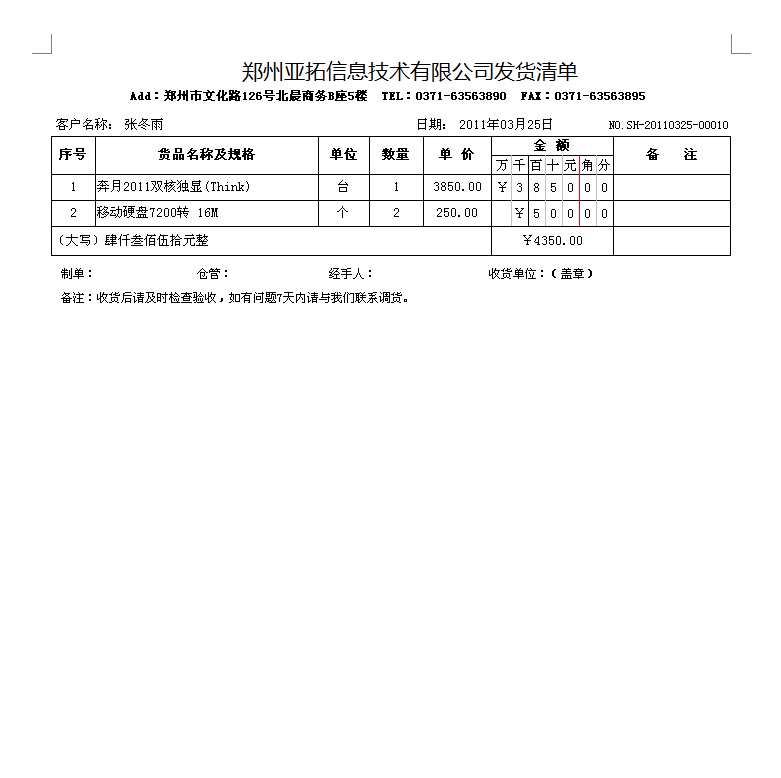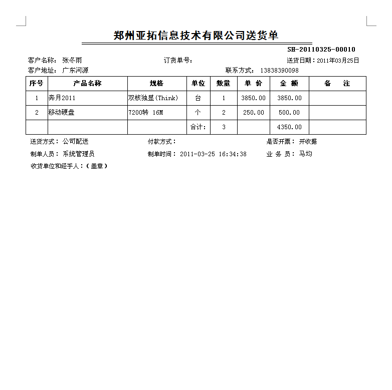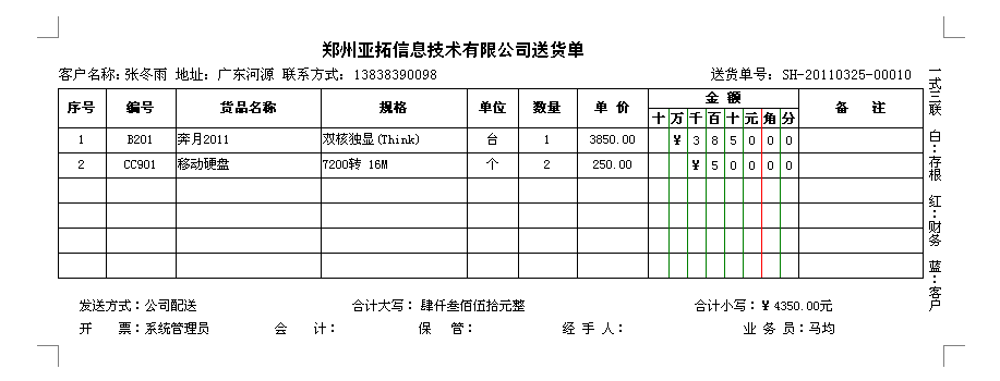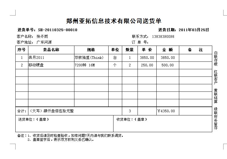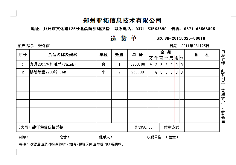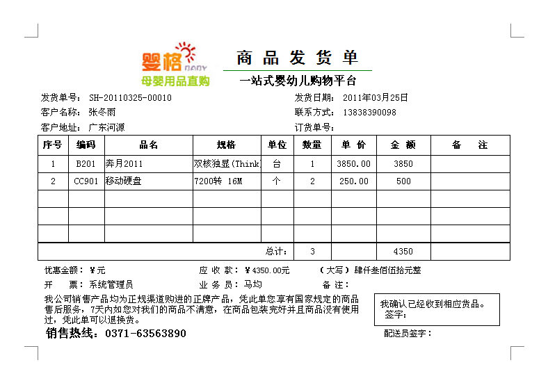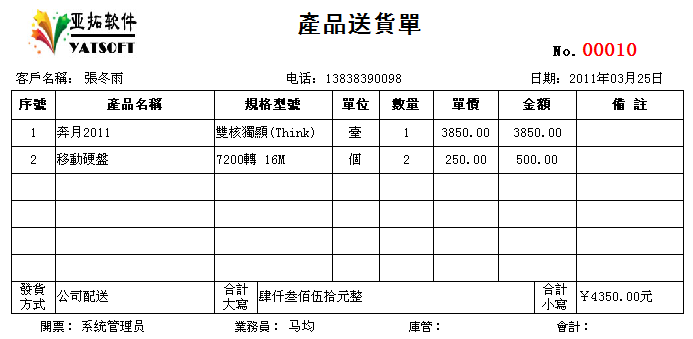 送貨單樣式/發貨單樣式/銷售單樣式/送貨單打印格式