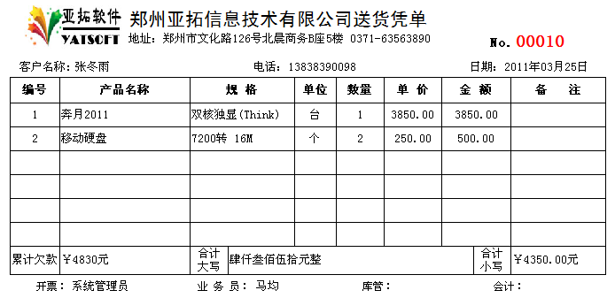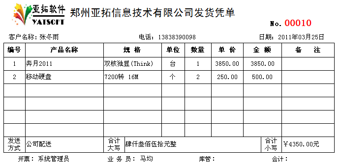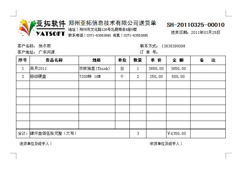 2011年12月31日前購買正版送貨單軟件,我們可免費定制送貨單樣式一套,以后如果新設計打印格式模板每個50元。系統內置了一些送貨單打印格式供參考,可在現有模版的基礎上進行定制,也可以將送貨單格式進行掃描發送給我們,由我們進行定制。