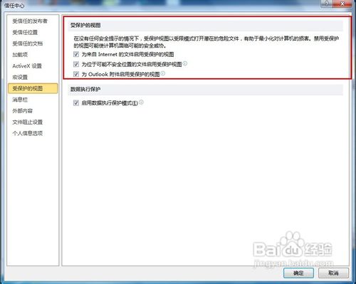 出現(xiàn)這種問題的原因是微軟為了推動(dòng)新的文檔格式,默認(rèn)設(shè)置不允許打開早期版本Excel文件,可以進(jìn)入文件菜單中的“選項(xiàng)”->“信任中心”->點(diǎn)“信任中心設(shè)置”,然后點(diǎn)“受保護(hù)的視圖”,把右邊的所有選項(xiàng)都不勾選。
