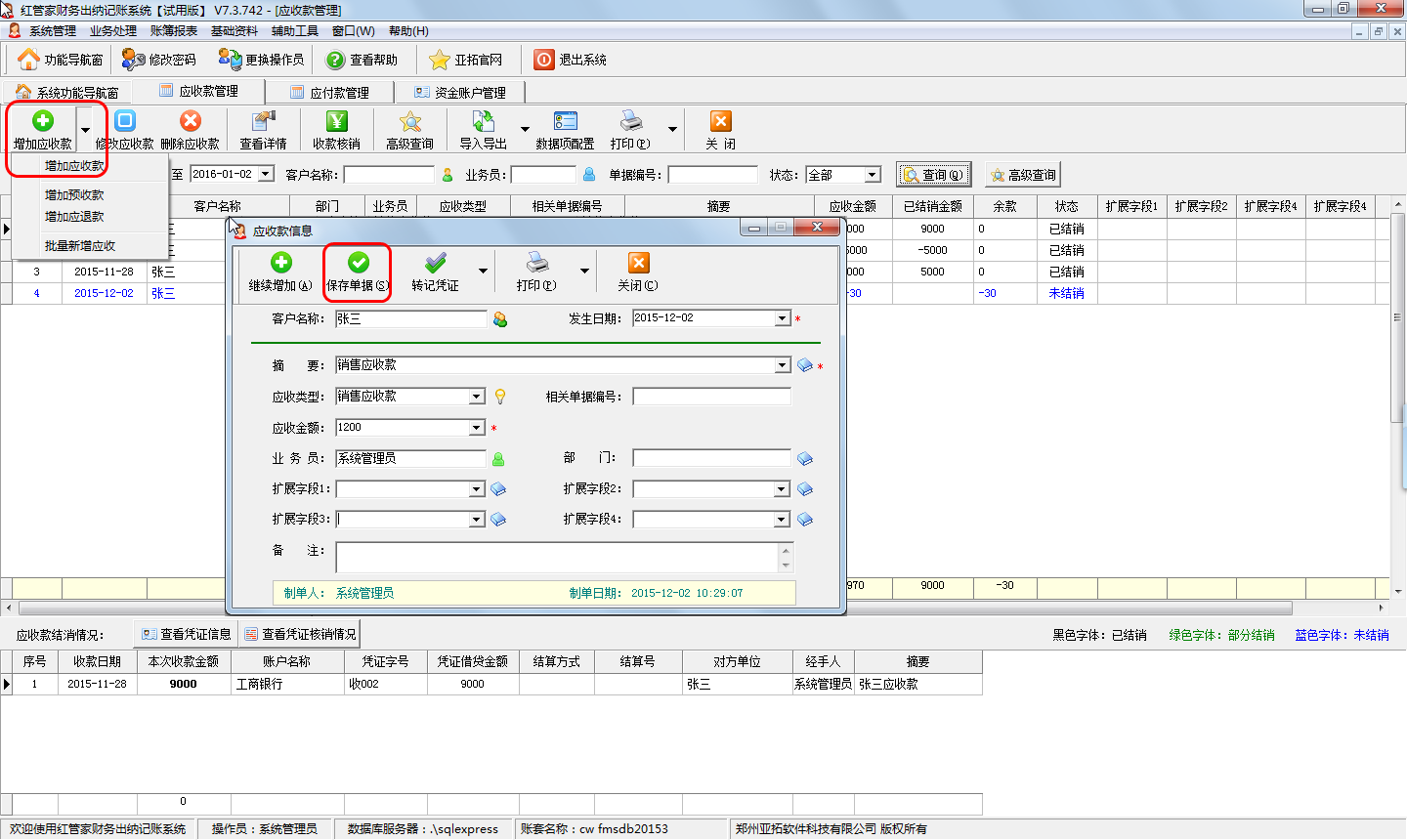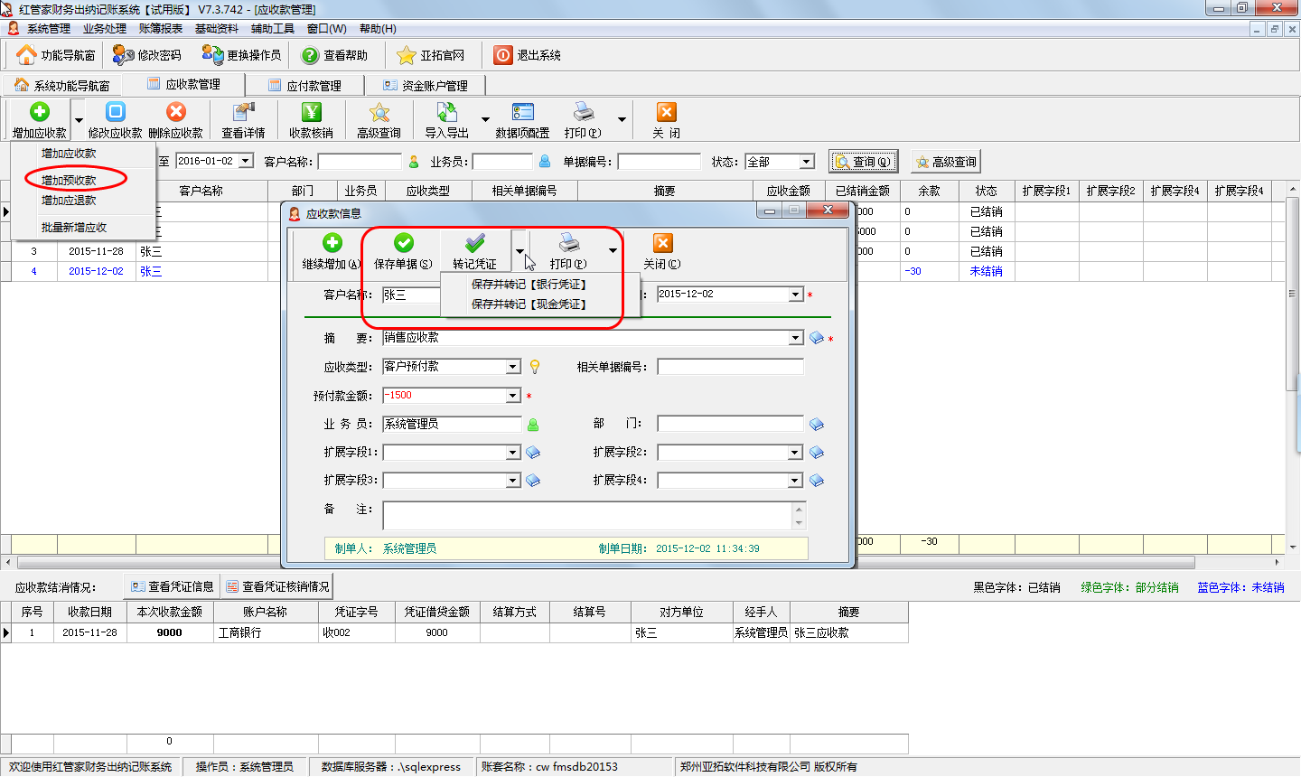 二、增加預(yù)收款及如何對預(yù)收款進行收款核銷