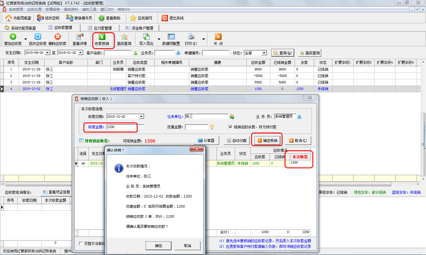 圖六 對預(yù)收款進行收款核銷界面