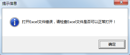 如果提示打開Excel文件失敗,如下圖4所示。請使用Excel 2003/2007/2013等打開這個Excel文件,按Ctrl+A全選數據復制一下,然后新建一個Excel文件,并將數據粘貼進去,再選擇新建的Excel文件進行導入試下。