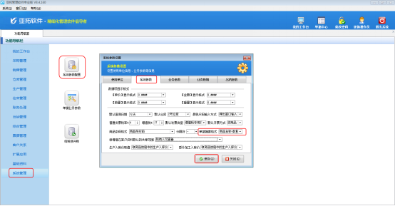 在功能導航窗中點擊“系統管理”—》“系統參數配置”,即可進入“系統參數設置”界面,其界面如圖1所示。