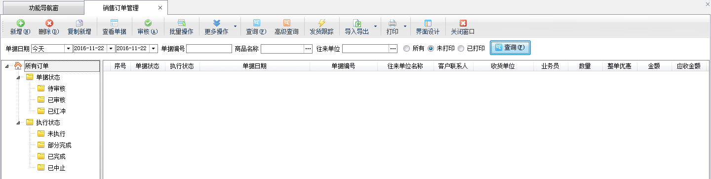 銷售訂單執(zhí)行情況:可以統(tǒng)計(jì)出每個(gè)銷售訂單執(zhí)行情況,包括合計(jì)金額、已完成金額、未完成金額以及中止金額等信息。