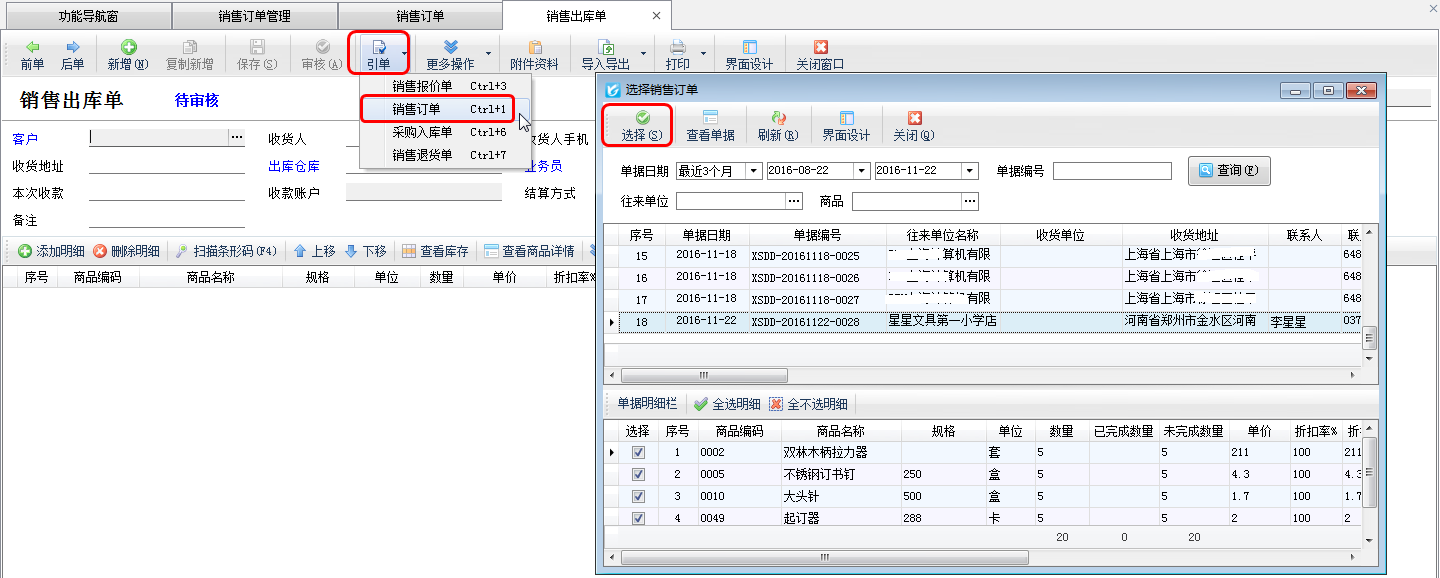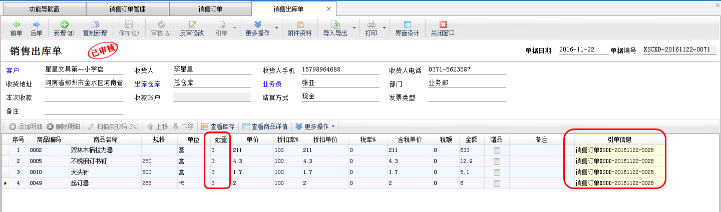 銷售訂單新增完成后,然后在功能導(dǎo)航窗點(diǎn)擊“銷售管理”——》“銷售出庫(kù)單”打開(kāi)銷售出庫(kù)單界面新增銷售出庫(kù)單,在工具欄點(diǎn)擊“引單”—》“銷售訂單”可打開(kāi)“選擇銷售訂單”窗口,在此窗口選擇需要發(fā)貨的銷售訂單,編輯發(fā)貨明細(xì)信息,然后保存審核出庫(kù)即可。