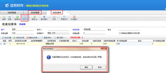 設置出納參數為審核提示轉記時,則結算單在保存審核后會提醒是否轉記憑證,步驟如上。