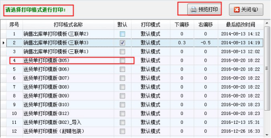 以送貨單軟件為例,示范如何選擇默認模板以外的打印模板,打開一個送貨單(確認開單狀態),點擊工具欄的打印按鈕下的“選擇格式打印”可以看到所有的打印格式,選擇需要的打印模板,點擊預覽打印,預覽打印界面點擊打印圖標就可以打印單據。如下圖1、2、3所示: