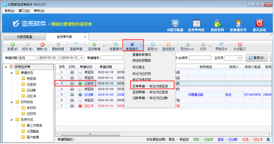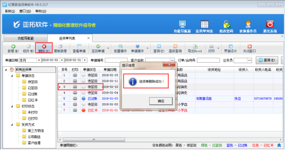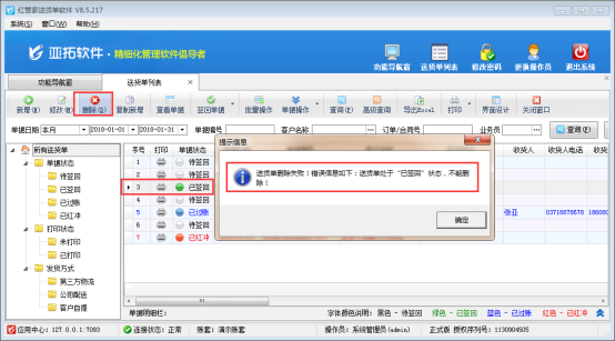 紅管家送貨單中內(nèi)置了一個(gè)簡(jiǎn)單的流程:待簽回(新開單)-》已簽回(業(yè)務(wù)員送貨回來(lái)或者客戶已簽收快遞)-》已過(guò)賬(財(cái)務(wù)確認(rèn)已收到貨款),用戶可以單據(jù)變化選擇標(biāo)記單據(jù)狀態(tài),有時(shí)候會(huì)遇到需要?jiǎng)h除已簽回單據(jù)的情況。
