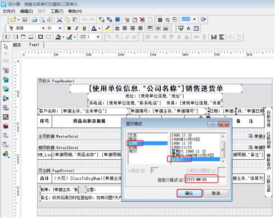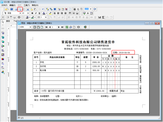 亞拓管理軟件、信管飛倉庫管理軟件、信管飛送貨單軟件為了滿足更多客戶的需求,軟件可自定義設置打印模板單據(jù)日期的顯示格式。本文以信管飛送貨單軟件為例,介紹一下如何修改打印模板中的單據(jù)日期的顯示格式。