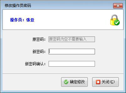 點擊“確定”按鈕則可以打開“修改操作員密碼”窗口,請修改操作員密碼即可,如下圖3所示: