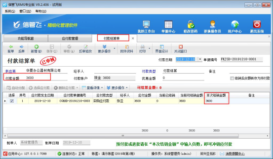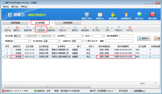 信管飛RMS軟件如何對應付款進行付款結算?
