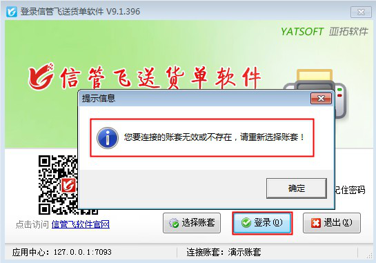 部分客戶有時(shí)存在不正常退出情況,重新登錄軟件時(shí)提示“您要選擇的賬套無(wú)效或不存在”,如下圖所示: