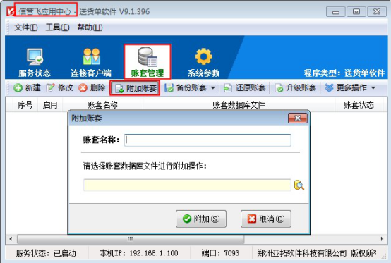 解決辦法:出現(xiàn)此種情況需附加下賬套,在賬套管理界面點(diǎn)擊“附加賬套”,選擇賬套文件進(jìn)行附加。如下圖所示,附加后登錄客戶端程序,點(diǎn)擊選擇賬套重新選擇進(jìn)行登錄。