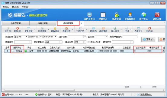 信管飛RMS軟件中如何對應收款進行收款結算?