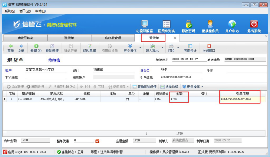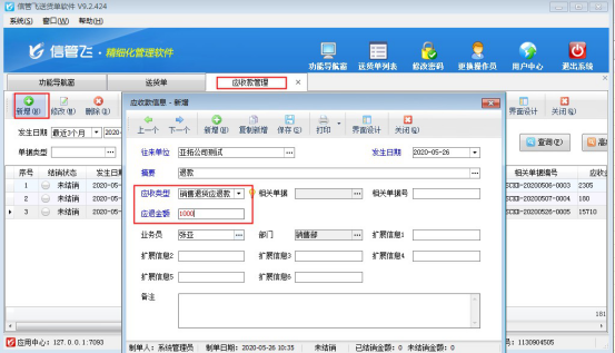 歡迎下載試用可登記應(yīng)退款以及可抵消應(yīng)收款的送貨軟件:信管飛送貨單軟件