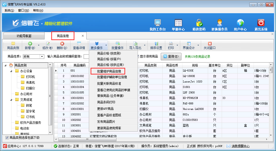 歡迎免費下載試用這款可以批量維護商品信息進銷存管理軟件信管飛RMS。