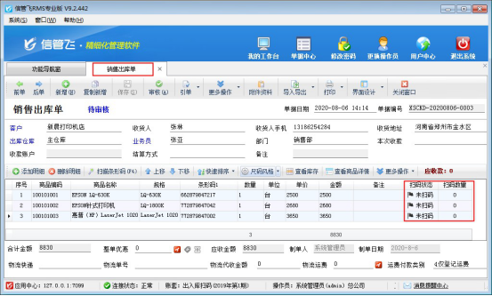 倉(cāng)庫(kù)掃碼功能,使工作將快捷高效,接收入庫(kù)和出庫(kù)的數(shù)據(jù)通過(guò)無(wú)線設(shè)備輕松導(dǎo)入進(jìn)銷存軟件中,節(jié)約了前后數(shù)據(jù)的校對(duì)和錄入的工作量,從本質(zhì)上提高工作效率。本篇文章以“信管飛RMS專業(yè)版的銷售出庫(kù)單”為例,示范下如何對(duì)接開(kāi)單和倉(cāng)庫(kù)掃碼確認(rèn)(文章按掃描條形碼示范)。