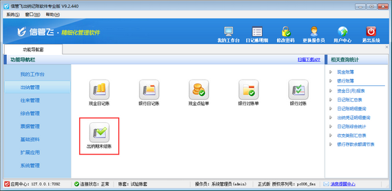 歡迎免費下載試用這款支持操作員權限設置出納記賬軟件信管飛出納記賬軟件