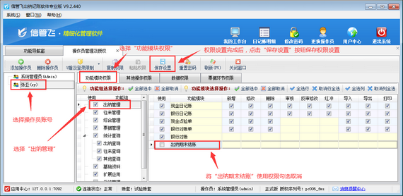 出納記賬軟件如何設置操作員不可操作出納期末結賬功能?