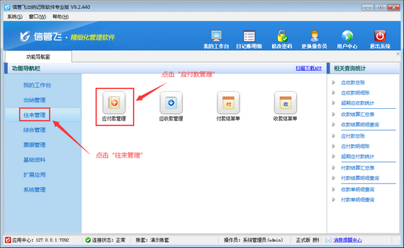 歡迎免費下載試用這款可以管理往來應收應付款的出納記賬軟件:信管飛出納記賬軟件。