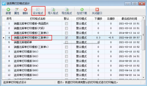 新開一個(gè)送貨單并保存,選擇客戶“亞拓軟件測(cè)試”開單,界面上顯示應(yīng)收款為1750(本單前應(yīng)收款),本單應(yīng)收4330,打印模板上需要顯示客戶欠款,在開單界面打印下選擇“打印格式設(shè)計(jì)”,進(jìn)入打印格式設(shè)計(jì)界面,點(diǎn)擊設(shè)計(jì)格式,進(jìn)入模板設(shè)計(jì)器界面添加,如下圖所示: