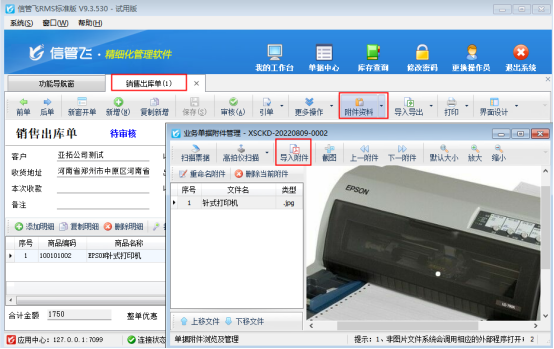 歡迎下載試用支持出庫單打印附件資料圖片的進銷存軟件:信管飛RMS軟件