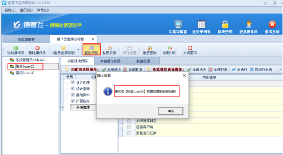歡迎下載試用可快速復(fù)制操作員權(quán)限設(shè)置的軟件:信管飛送貨單軟件
