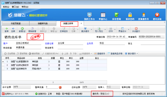 信管飛倉庫管理軟件、信管飛RMS軟件等支持新增多個操作員并可設(shè)置操作員權(quán)限,有用戶需要開銷售單需要多人審核,軟件支持設(shè)置多級審核,本文以“信管飛倉庫管理軟件”為例示范下單據(jù)多級審核功能如何使用?