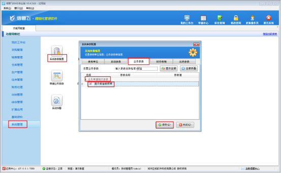 功能導(dǎo)航欄點(diǎn)擊“系統(tǒng)管理”-》“系統(tǒng)參數(shù)配置”,進(jìn)入系統(tǒng)參數(shù)配置界面,業(yè)務(wù)參數(shù)界面業(yè)務(wù)單據(jù)相關(guān)參數(shù)下勾選參數(shù)“顯示報溢報損單”,勾選之后點(diǎn)擊保存。