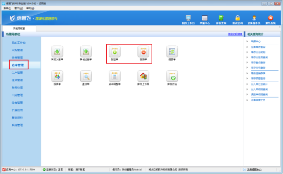 參數(shù)設(shè)置完成后,退出重新登錄軟件,此時倉庫管理處報溢報損單已顯示。