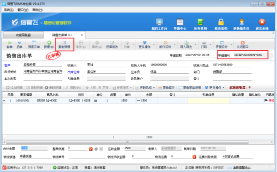打開一張銷售單據(jù),在單據(jù)界面點擊復制新增,復制成功后被復制的單據(jù)編號提取到新增單據(jù)主體“引單信息”項,如下圖所示:
