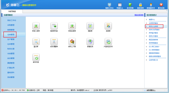 參數設置完成后,退出重新登錄軟件,此時倉庫管理右側查詢統計處已顯示庫存分倉明細查詢。