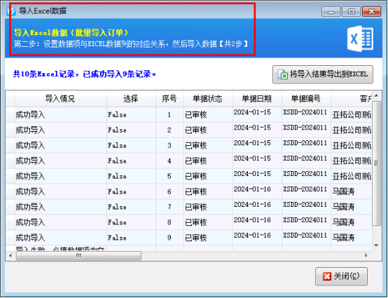 通過復制Excel記錄,點擊粘貼按鈕進行導入操作,設置數據項和Excel數據項對應,然后導入數據。導入后會顯示導入情況,如下圖所示: