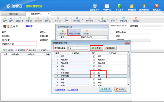 設(shè)置完成后,在開單界面選擇此項(xiàng),在選擇界面點(diǎn)擊“設(shè)置控制項(xiàng)目”,可新增控制項(xiàng)目,根據(jù)控制項(xiàng)目分別配置顯示的數(shù)據(jù)項(xiàng),如下圖所示: