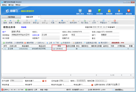 參數(shù)保存后,在功能導航窗點擊“銷售管理”—》“銷售出庫單”,新增銷售單,商品規(guī)格信息可以正常修改。如圖所示: