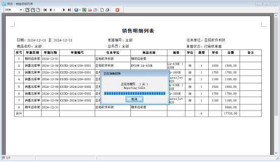 出現(xiàn)上圖提示信息窗口,一直處于正在準(zhǔn)備報(bào)表窗口無(wú)法導(dǎo)出Excel文件,原因是桌面已存在“亞拓軟件科技對(duì)賬單”Excel表格并且表格處于打開(kāi)狀態(tài),再次導(dǎo)出相同名稱(chēng)的對(duì)賬單表格。
