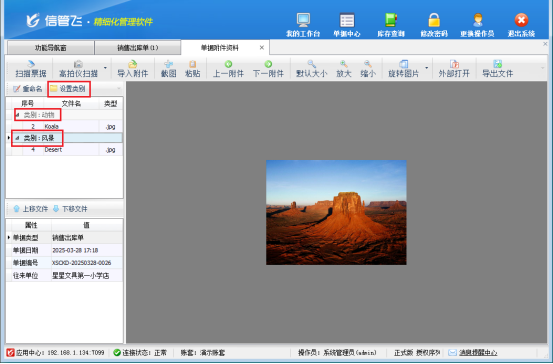 設(shè)置完成后,進(jìn)入銷售管理模塊新開銷售出庫單并保存后,點(diǎn)擊工具欄上的“附件資料”按鈕,即可進(jìn)入附件管理界面。此時(shí),附件資料窗口上已經(jīng)新增了“設(shè)置類別”按鈕。點(diǎn)擊該按鈕,可以輕松地設(shè)置常用附件資料的類別,讓附件管理更加有序。