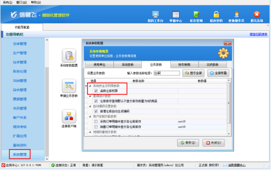 信管飛RMS支持“倉(cāng)庫(kù)權(quán)限”功能,管理員只需在“系統(tǒng)參數(shù)配置”中勾選“啟用倉(cāng)庫(kù)權(quán)限”,即可開啟分級(jí)管理模式。該功能簡(jiǎn)單易用,無(wú)需復(fù)雜操作,輕松滿足企業(yè)對(duì)多倉(cāng)庫(kù)、多人員協(xié)同管理的核心需求。