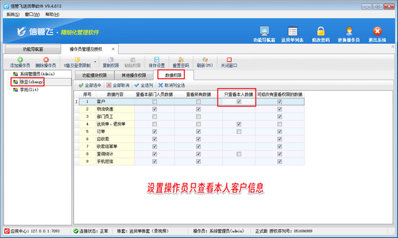 歡迎下載試用這款支持設置操作員只能查看本人客戶信息送貨單軟件信管飛送貨單軟件