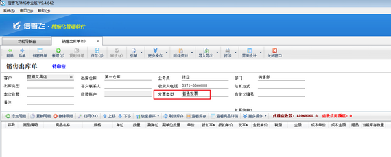 功能配置完成后,當業務人員在“銷售管理”模塊新建銷售出庫單時,只需選擇對應客戶,系統將自動調取預設的默認發票類型,無需每次手動選擇(如圖示)。這種智能記憶功能,使開單效率提升60%以上,特別適合客戶群體龐大、發票需求多樣的成長型企業。