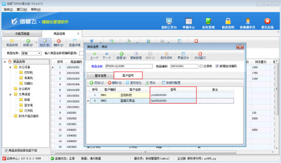 歡迎免費下載試用這款可以設(shè)置同一商品不同客戶型號的進銷存打印軟件:信管飛RMS。