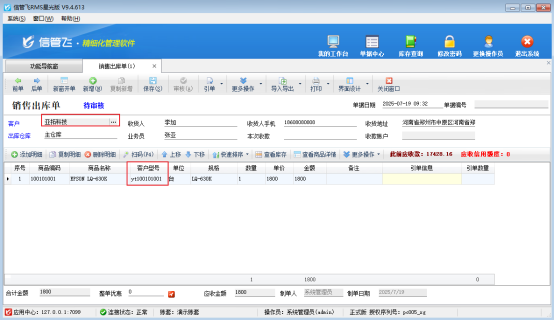 設(shè)置完成后,我們新開一個銷售單驗證一下,選擇客戶“亞拓科技”,然后添加商品“EPSON LQ-630K”,然后在商品明細中自動顯示提前維護好的客戶型號“yt100101001”,如下圖所示。
