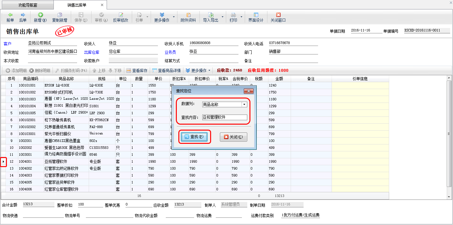 亞拓管理軟件(精細化管理軟件、進銷存管理軟件、記賬軟件)及紅管家倉庫管理軟件(庫存管理軟件)業(yè)務單據(jù)明細內(nèi)支持查找定位功能,可以快速定位單據(jù)明細內(nèi)滿足條件的明細記錄,本篇文章以亞拓管理軟件為例詳細介紹下業(yè)務單據(jù)明細內(nèi)查找定位功能如何使用。 打開業(yè)務單據(jù)(本篇文章以“銷售出庫單”為例),在單據(jù)明細工具欄點擊“更多操作”—》“查