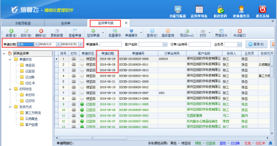 信管飛送貨單軟件、信管飛RMS軟件、信管飛倉庫管理軟件等都支持進(jìn)行開單操作,對(duì)正式用軟件之前的單據(jù)補(bǔ)錄,或者中間單據(jù)少開的,軟件支持按照之前日期進(jìn)行開單,可以開單修改單據(jù)日期為指定日期。 以信管飛送貨單軟件為例,示范下送貨單如何開其他日期的單據(jù)。 在功能