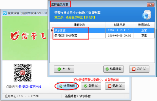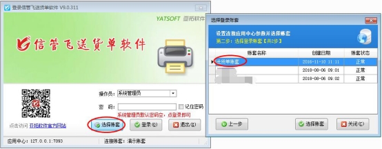 亞拓軟件旗下的信管飛RMS、信管飛倉庫管理軟件、信管飛送貨單軟件、信管飛出納記賬軟件、信管飛票據(jù)打印軟件等軟件程序安裝后會顯示兩個圖標,一個是應(yīng)用中心程序(紅色圖標),一個是客戶端程序(藍色圖標)。這些軟件都含有賬套管理功能,在應(yīng)用中心里面可以建立多個賬套,已使用的帳套如果不再繼續(xù)使用,可以停用帳套,停用帳套后,客戶端程序登錄時無法連接該帳套。我們以信管飛送貨