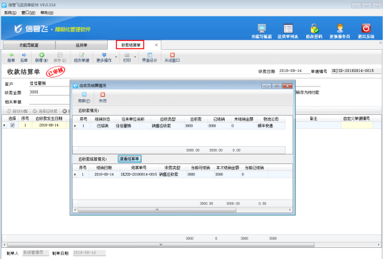 信管飛送貨單軟件開過送貨單后,會自動生成這個送貨單對應(yīng)的應(yīng)收款信息,后續(xù)收款時可以對應(yīng)收款進行收款結(jié)算。如何快速查看一個送貨單的應(yīng)收款及結(jié)銷情況呢?下面我們演示一下操作步驟。 打開一個送貨單,點擊“更多操作”—》“查看應(yīng)收款及結(jié)銷情況”,系統(tǒng)會彈出“應(yīng)收及結(jié)算情況”窗口,如下圖1、圖2所示:圖1圖2 &