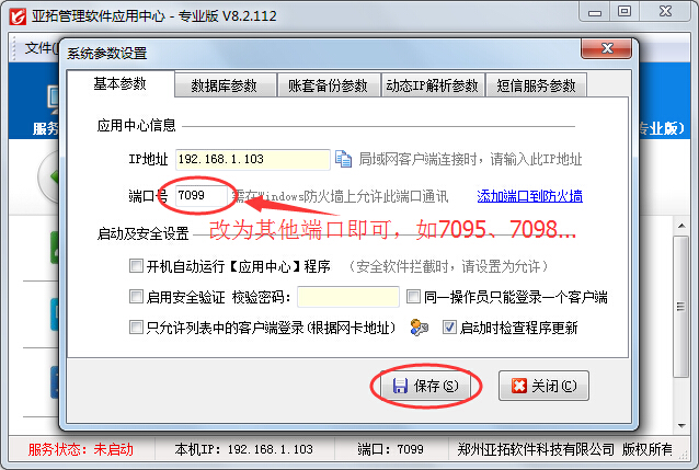 亞拓軟件開發(fā)的紅管家系列軟件和亞拓系列軟件,均采用先進(jìn)的多層技術(shù)體系架構(gòu),程序運(yùn)行安全、穩(wěn)定、高效。客戶端程序與服務(wù)器端程序(即“亞拓軟件應(yīng)用中心”程序)進(jìn)行通訊,需要設(shè)置通訊端口,其中紅管家軟件(V8.0版本以前需要開放兩個(gè)通訊端口,V8.0及以后版本僅需要一個(gè)通訊端口)、亞拓管理軟件和亞拓倉庫管理軟件僅需要一個(gè)通訊端口。以下以“亞拓管理軟件”為例說明如何配置通訊端口,