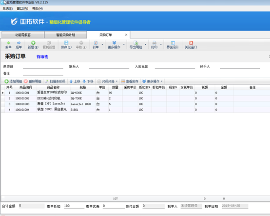 亞拓軟件開發(fā)的紅管家送貨單軟件是一款非常簡單易用的送貨單打印軟件,可以方便的打印送貨單(有些公司叫銷售單、銷貨清單、發(fā)貨單等),而且可以同時(shí)打印快遞單,不需要重復(fù)錄入數(shù)據(jù),非常方便。很多企業(yè)特別是初創(chuàng)的小企業(yè),之前可能主要是通過手寫清單,在選擇使用送貨單打印軟件進(jìn)行電腦開單打印的時(shí)候,對(duì)要購買那種打印機(jī)不太清楚,下面我們介紹下主要的打印機(jī)類型和推薦選擇的打印機(jī)